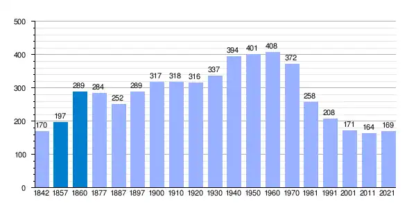 | Gráfica de evolución demográfica de Gotarrendura[3] entre 1842 y 2021 |