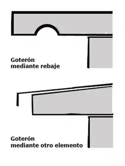 Pueden hacerse de dos maneras fundamentales: mediante rebaje en otro elemento constructivo e interponiendo un elemento intermedio, como por ejemplo una pletina metálica. De cualquiera de las dos formas el goterón provoca que el agua, que puede desplazarse verticalmente hacia abajo por gravedad y horizontalmente por tensión superficial empujada por el viento, tenga que subir; al no poder realizar este movimiento cae por la parte interior del goterón, protegiéndose así el paramento que quede detrás.