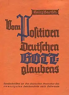 En el Programa Nacionalsocialista de 1920 del Partido Nacionalsocialista Obrero Alemán (NSDAP), Adolf Hitler mencionó por primera vez la frase «cristianismo positivo». El Partido no deseaba vincularse a una denominación cristiana en particular, sino al cristianismo en general, y buscaba la libertad de religión para todas las denominaciones «siempre que no pongan en peligro su existencia ni se opongan a los sentidos morales de la raza germánica».
