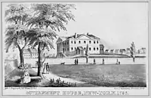 Desde el 4 de marzo de 1789 hasta el 5 de diciembre de 1790, la capital federal de los Estados Unidos fue Nueva York, en el Federal Hall. El presidente Washington ocupó primero la Samuel Osgood House – desde el 23 de abril de 1789 hasta el 23 de febrero de 1790 – luego la Alexander Macomb House – desde el 23 de febrero hasta el 30 de agosto de 1790 – ambas mansiones privadas. El 13 de julio de 1789, la legislatura del estado de Nueva York aprobó una resolución para que el sitio del Fort George fuera usado para construir una "casa apropiada ... para la residencia y comodidad del Presidente de los Estados Unidos."[2]