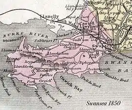 El antiguo señorío de Gower cubría un área más extensa vinculada a los ríos: Loughor, Amman, Twrch y Tawe. El Acta de Unión (1535) transfirió el Señorío al condado histórico de Glamorgan, y la parte suroreste se convirtió en el Hundred de Swansea.