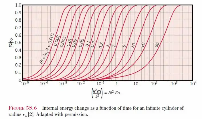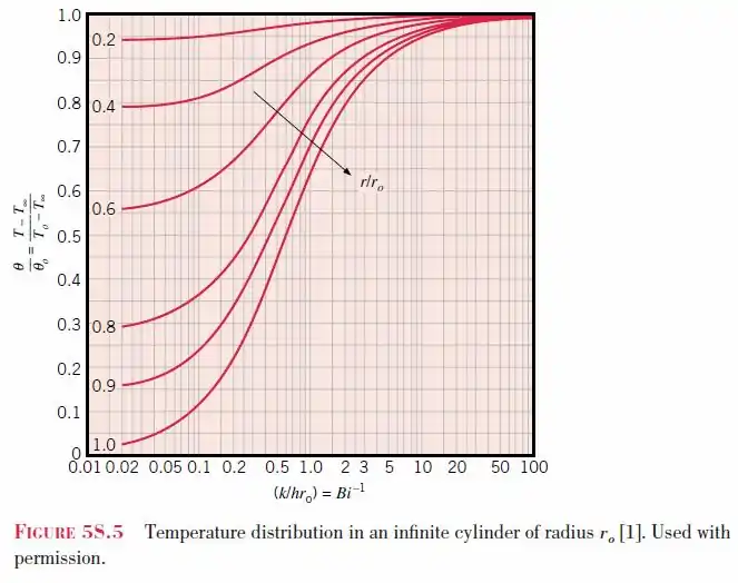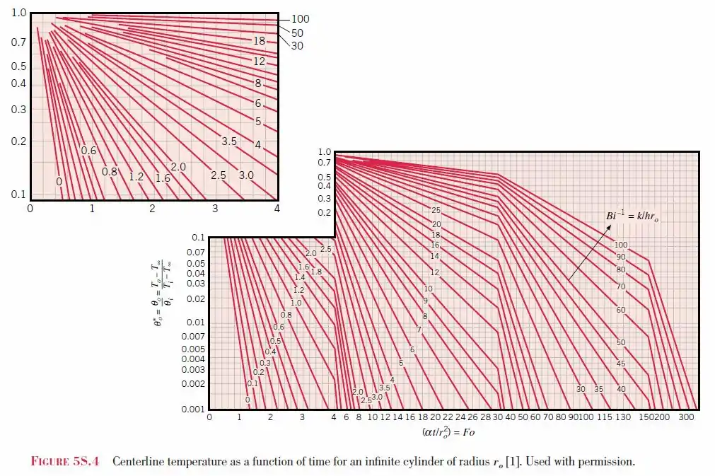 Para el cilindro infinitamente largo, el gráfico de Heisler se basa en primer término en una solución exacta a una función de Bessel.[2]