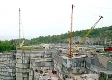 Dos torres de perforación en una cantera de granito.