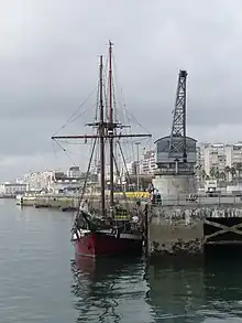 Debido al poco peso que eran capaces de soportar las grúas del puerto de Santander a finales del siglo XIX, los cargueros con cargas pesadas debían ir a otros puertos del Cantábrico. La Junta de Obras del Puerto (actual Autoridad Portuaria) encargó en 1896 a F.V. Sheldon y Otto Gerdtzen el diseño y construcción de una grúa que pudiera mover 30 toneladas. Dicha grúa se inauguró el 17 de mayo de 1900 y costó en total 74 820 pesetas de la época. Estaba propulsada por una máquina de vapor que años después se sustituyó por un motor eléctrico. En las pruebas pudo levantar hasta 36 toneladas.[1]