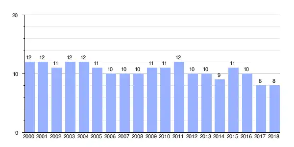 | Gráfica de evolución demográfica de Graña de Vilar entre 2000 y 2018 |