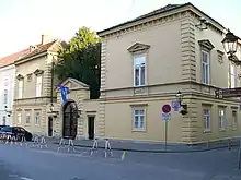 Al otro lado de la plaza, en la esquina de la Calle Basaričekova, se sitúa la oficina de la parroquia de San Marcos. Este edificio fue construido en el siglo XVI, aunque fue renovado en el siglo XVIII y se le añadió una extensión en el XIX. En el oeste de la Plaza de San Marcos, se construyó a comienzos del siglo XIX la mansión llamada Banski dvori, antigua residencia del gobernador civil de Croacia (en croata: Ban), y se puede clasificar como uno de los monumentos históricos de Zagreb. Banski dvori, junto con la mansión barroca junto a ella, es la sede del Gobierno de Croacia. Desde 1734, el Parlamento de Croacia ha ocupado el lado este de la Plaza de San Marcos.