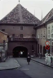Había cuatro puertas principales en la muralla: la puerta oeste en la Calle Mesnička, la nueva puerta del norte, conocida posteriormente como puerta de la Calle Opatička, Dverce en el sur y Kamenita vrata (en español: Puerta de Piedra) en el este. Kamenita vrata es la única puerta que se conserva en la actualidad.
