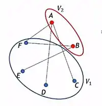 En teoría de grafos, un grafo bipartito es un grafo cuyos vértices se pueden separar en dos conjuntos disjuntos, de manera que las aristas no pueden relacionar vértices de un mismo conjunto.[1]