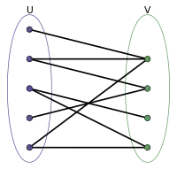 Un grafo es bipartito si N se puede particionar en dos conjuntos U y V, es decir, tal que y , de manera que las aristas sólo pueden conectar vértices de un conjunto con vértices del otro; formalmente: no existe ninguna arista ni .