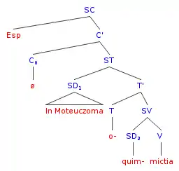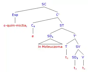 Árbol sintáctico, para una oración simple ( Motēuczōma ōquīmmictih 'Moctezuma los mató', en orden SOV).