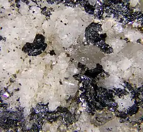 Entre otros minerales, puede estar asociada a cuarzo, albita, moscovita, anatasa, brookita, rutilo, fluorapatito, xenotima y senaíta.[5]