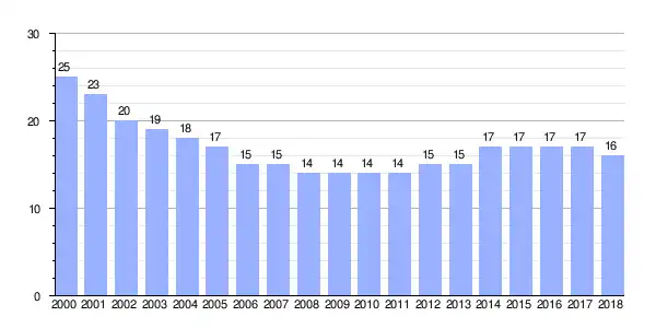 | Gráfica de evolución demográfica de Gramil entre 2000 y 2018 |
