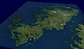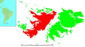 Ubicación dentro del archipiélago de las Malvinas.Nota: Según la reivindicación argentina, dicha isla forma parte del Departamento Islas del Atlántico Sur dentro de la provincia de | ||