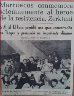 - Halstead, John P. (1969). Rebirth of a nation; the origins and rise of Moroccan nationalism, 1912-1944,. Distributed for the Center for Middle Eastern Studies of Harvard University by Harvard University Press. p. 169. ISBN 0-674-75000-4. OCLC 5152130. Consultado el 7 de diciembre de 2020.