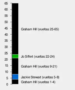 | 6 | 16 | Jo Siffert | Lotus-Ford | 64 | + 1 Vuelta | 1 | 1 |