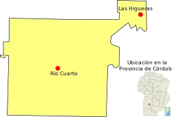 | Subdivisiones | 3 localidades:rio cuarto-las higueras-santa catalina | |