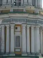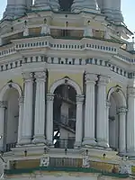El campanario fue el campanario independiente más alto en el momento de su construcción en 1731, condición que mantuvo hasta 1745.[1] Fue diseñado por el arquitecto Johann Gottfried Schädel, y los fondos necesarios para su construcción fueron proporcionados por el atamán cosaco Iván Mazepa (1639-1709). Su altura total, con la cruz cristiana, es de 96,5 metros (5.ª iglesia ortodoxa más alta del mundo).