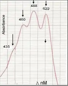 El espectro de absorción Ultravioleta/Visible del granadaeno (disuelto en DMSO/TFA) es extraordinariamente similar al de un caroteno con un sistema análogo de dobles enlaces conjugados (p.e. α-caroteno)[4] por lo que durante muchos años el pigmento de S.agalactiae se consideró un caroteno.[4]