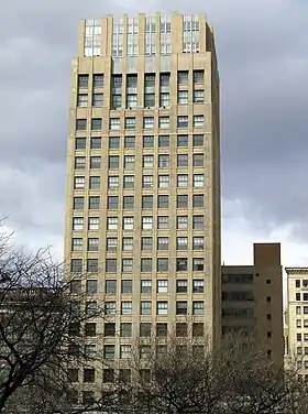 En la década de 1950, en un esfuerzo por modernizar el edificio y aumentar el espacio alquilable, se eliminaron la cornisa y el jardín originales y se agregaron dos pisos adicionales a la torre, que están revestidos con mampostería de ladrillo y acero inoxidable. Al mismo tiempo, se agregó un edificio anexo de nueve pisos, que contiene un nivel de estacionamiento y siete pisos de oficinas por encima del nivel y dos niveles de estacionamiento por debajo del nivel. El anexo está revestido con mampostería de ladrillo. Las fachadas norte y sur tienen ventanas de franjas originales y de reemplazo. Las fachadas este y oeste son de mampostería sólida. La Torre y el Anexo están conectados por una pasarela cerrada en los pisos tres a diez.