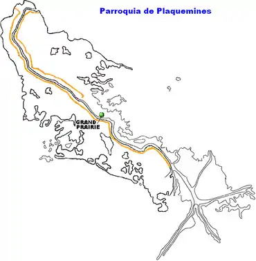 Localización de Grand Prairie en el mapa de la Parroquia de Plaquemines.