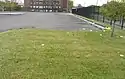 Al oeste del pabellón estaba el ala de tres pisos con espacio comercial y de oficinas. Hacia el norte estaba la sección del auditorio que se construyó con paredes de ladrillo con paneles sin ventanas.[2]