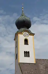 Grassau, la torre de la iglesia catolica: Pfarrkirche Mariae Himmelfahrt
