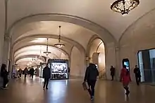 El portal más al sur conduce al Graybar Passage,[34] uno de los tres pasillos oeste-este que conectan Grand Central con Lexington Avenue.[42] Fue construido en el primer piso del edificio Graybar en 1926.[43] El pasillo tiene un techo de 8,5 m y mide en gran parte 12,2 m ancho, ensanchándose a 18,3 m en su extremo occidental. Para evitar la congestión, no hay escaparates a lo largo del pasillo. Hay tres puertas que parten del lado norte del pasaje, que conducen a seis de las vías.[35] Sus muros y siete grandes arcos transversales son de travertino de sillería curvada, y el suelo es de terrazo. El techo está compuesto por siete bóvedas de arista, cada una de las cuales tiene un candelabro de bronce ornamental. Las dos primeras bóvedas, vistas desde la salida de Grand Central, están pintadas con cúmulos, mientras que la tercera tiene un mural de 1927 de Edward Trumbull que representa el transporte estadounidense.[44][45]