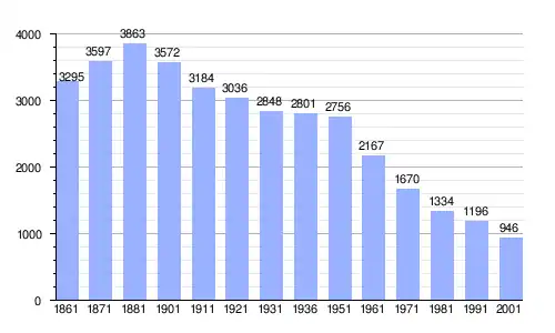 | Gráfica de evolución demográfica de Greci entre 1861 y 2001 |