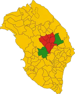 ![]() Mapa que muestra las áreas de los hablantes grecoitalianos de Grecìa Salentina y Bovesia.