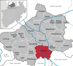 La localidad se encuentra ubicada al norte del estado, en la región de Münster, cerca de la frontera con el estado de Baja Sajonia, y es atravesada por el Río Ems.