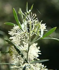 Es un arbusto extendido endémico de Australia Occidental, principalmente del área de Geraldton. Su altura alcanza entre 0.9 y 1.5 metros. Las flores tienen dulce aroma, son de color blanco pero ocasionalmente también rosas. Se producen en el temprano invierno hasta mediados de la primavera. Sus hojas estrechas son trilobadas (de ahí su nombre triloba) y cada lóbulo termina en un punto duro.