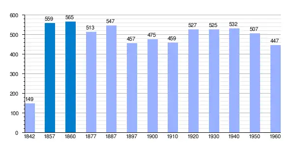 | Gráfica de evolución demográfica de Gerbe y Griebal[1] entre 1842 y 1960 |