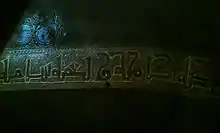 Las alas están decoradas con incisiones dibujando plumas estilizadas, el pecho alberga escalas semicirculares y la parte posterior tiene un esquema de círculos concéntricos en un fondo con relieve. Encima de cada pata se muestra una cartucho en forma de gota con motivos arabescos y se representan leones en la cara frontal de cada una de las patas, mientras que en la cara trasera se muestran pájaros, quizás águilas. Existen tres aberturas que llevan al interior de la estatua en la boca, en la parte posterior, quizás de una cola desaparecida, y una grande bajo el abdomen. En el interior hay una especie de copa esférica realizada en bronce que está soldada con una pieza refinada del mismo metal. Se desconoce para qué se utilizaba este artefacto, que ha dado lugar a múltiples teorías descritas más adelante.[1]