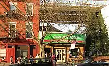 Fila de clientes esperando afuera del local original de Grimaldi's Pizzeria.[12] Como Grimaldi's no toma reservaciones, las colas esperando por mesas son usualmente largas[11] y se extienden a lo largo de Old Fulton Street.[13]