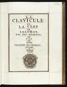 - Clavicula Salomonis, siglo XV, probablemente reedición de un escrito medieval más antiguo. Es probable que partiendo de este grimorio se escribiera el El Lemegeton, (introducción: Ars Goetia).
