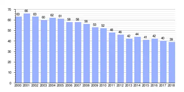 | Gráfica de evolución demográfica de Grobas[3] entre 2000 y 2018 |
