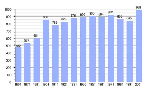 | Gráfica de evolución demográfica de Grosso entre 1861 y 2001 |