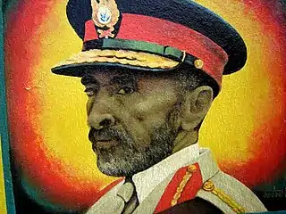 ![]() Grafiti de Selassie en el Museo Bob Marley, en Kingston. Para los rastafaris, Selassie fue considerado una reencarnación de Dios en la tierra. | ||