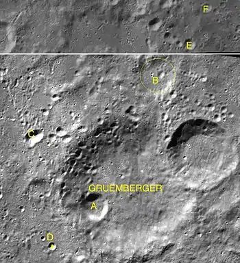 Por convención estos elementos son identificados en los mapas lunares poniendo la letra en el lado del punto medio del cráter que está más cerca de Gruemberger.