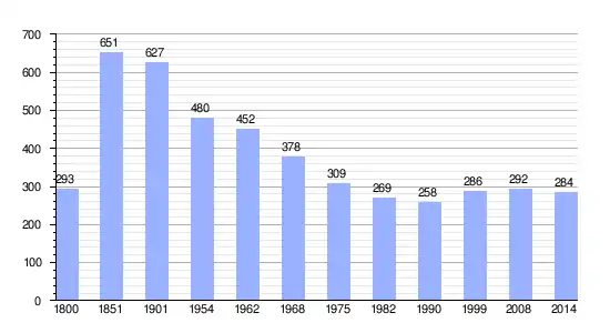 | Gráfica de evolución demográfica de Grugé-l'Hôpital entre 1800 y 2014 |