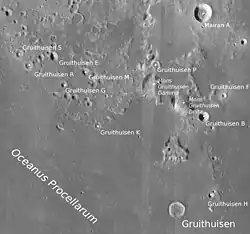 Por convención estos elementos son identificados en los mapas lunares poniendo la letra en el lado del punto medio del cráter que está más cerca de Gruithuisen.