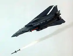 Un F-14D lanzando un AIM-7 Sparrow. También porta una bomba GBU-24 Paveway III.