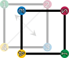- Rotaciones del cuadrado de 90°, 180 ° y 270 ° a la derecha, expresadas con r1, r2 y r3, respectivamente.