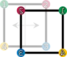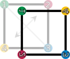 | Los elementos del grupo de simetría del cuadrado (D4). Los vértices se pintan y se numeran al objeto de poder visualizar las operaciones. | |||