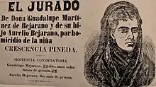 - Guadalupe y Crescencia Pineda: Fueron dos hermanas asesinadas en 1892.[3] Bejarano acababa de salir de prisión, tras tan solo haber pasado 5 años en prisión.