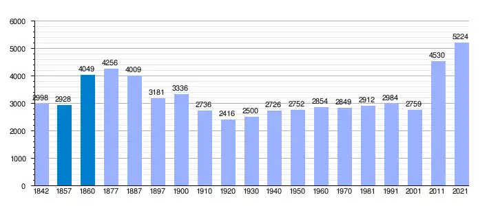 | Gráfica de evolución demográfica de Gualchos[3] entre 1842 y 2021 |