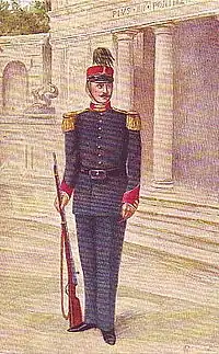 Los conformantes de estas tropas vestían una uniforme azul y un quepis emplumado.