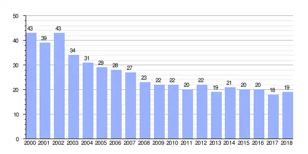 | Gráfica de evolución demográfica de Guende entre 2000 y 2018 |