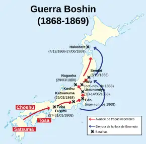 La Guerra Boshin (戊辰戦争 Boshin Sensō?, "Guerra del Año del Dragón")[2] es el nombre que se le dio a la guerra civil que tuvo lugar en Japón desde 1868 hasta 1869 entre los partidarios del gobierno del shogunato Tokugawa en el poder y la facción que pretendía la devolución del poder político a la corte imperial. La guerra tuvo su origen en la insatisfacción existente entre muchos nobles y jóvenes samuráis con el trato a los extranjeros por parte del gobierno como consecuencia de la apertura de Japón en la década precedente.