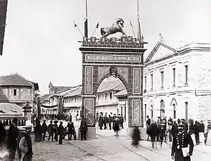 ![]() Arco del triunfo colocado en Bogotá para recibir al general Rafael Reyes después de la Batalla de Enciso | ||||